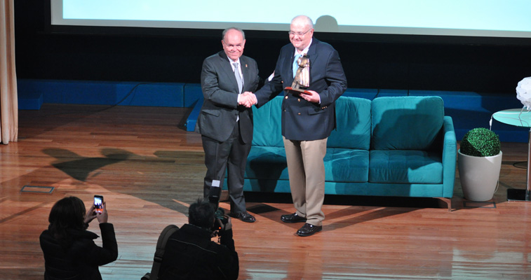 El presidente del Patronato de la Obra San Martín, José María Carceller, ha sido el encargado de entregar el "San Martín de la Media Capa" al rector de la UIMP, César Nombela, en un acto celebrado esta mañana en el Paraninfo de La Magdalena. La Obra San Martín, que este el próximo lunes cumple 70 años de trabajo, ha reconocido así el apoyo de la UIMP desde 2014, año en el que la Fundación impartió su primer curso de verano en La Magdalena.