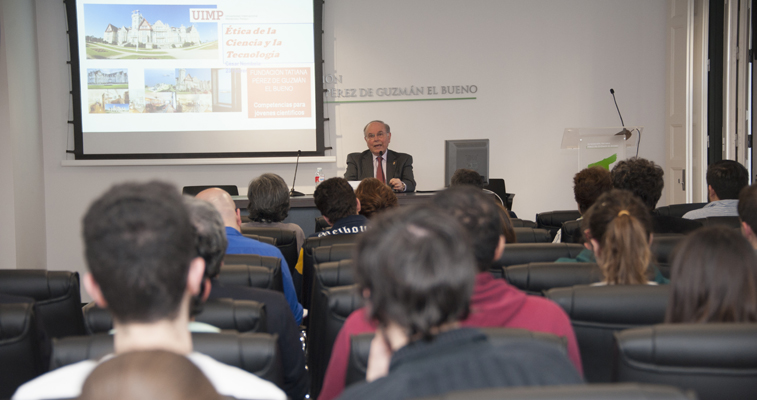 Madrid.– El rector de la Universidad Internacional Menéndez Pelayo, César Nombela, ha inaugurado el encuentro Competencias para jóvenes científicos que organiza la institución académica y la Fundación Tatiana Pérez de Guzmán el Bueno. Le han acompañado el presidente de la fundación, Teodoro Sánchez-Ávila, y el director del curso, el coordinador de Estudios y Programas de la UIMP, Miguel Ángel Casermeiro.